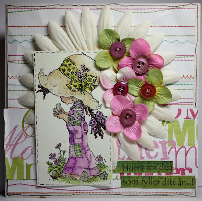 Først ut var strengt tatt Torill, selv om hun tjuvstartet i går *hihi* Da hun stakk innom for å låne Silhouetten litt, hadde hun med seg en hyggelig bursdagshilsen, deriblant dette nyyydelige kortet! 1000 hjertelig takk, Torill, dette ble jeg så glad for, det vet du!